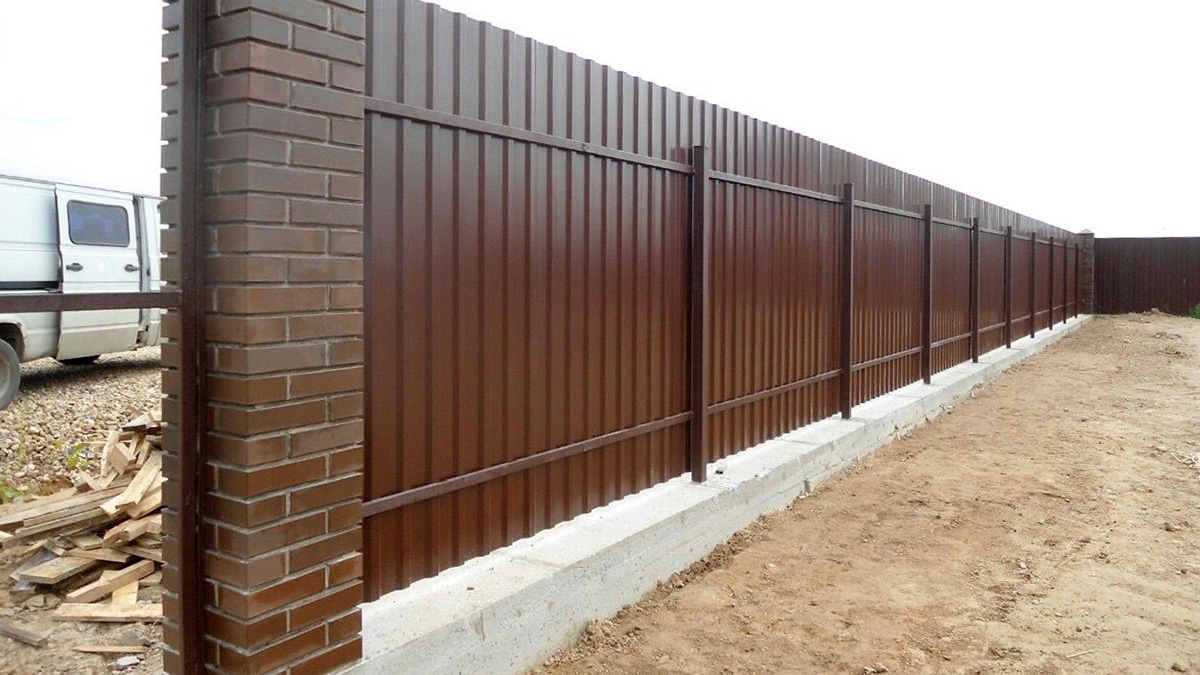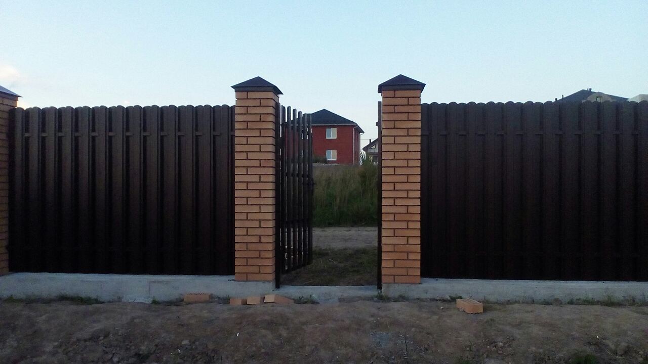 Монолитные заборы с кирпичными столбами